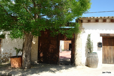 Al cruzar la calle nos encontramos con la puerta de madera, que flanqueda en su lado izquierdo por un imponente árbol, daba lugar a la entrada al patio de Bodegas CUEVA. Allí estaba Adela que nos acogió estupendamente y algo me decía que la velada iba a ser muy intensa e interesante. Mientras esperábamos a Mariano, enólogo de la bodega, y a algunas personas más, Adela nos preparó un café y nos frutos secos en una mesa situada debajo de una joven higuera, donde empezó a fraguarse una bonita tertulia amable y llena de interés para los asistentes.