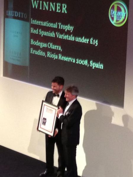 La Revista británica Decanter, distingue a Erudito Reserva 2008 con el “International Trophy” “Best in Show” que lo encumbra como uno de los 32 mejores vinos del mundo y el mejor Rioja de menos de 18 €.
