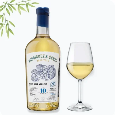 Bodega: Bodega Rodríguez & Sanzo Denominación: D.O. Rueda Variedad: 100% Verdejo Elaboración: Crianza bajo velo de flor Cata: Vista Color amarillo dorado brillante con reflejos pajizos intensos. Se muestra limpio y luminoso. Nariz En nariz es complejo y elegante. Aparecen notas de manzana asada , recuerdos de frutos secos como almendra y avellana , y un fondo de panadería y levadura de flor que delata su crianza bajo velo. Con la aireación surgen matices de heno seco y camomila , junto a toques de piel de limón confitada y un sutil carácter salino . Boca En boca tiene una entrada seca y envolvente, con textura glicérica que llena el paladar. Su paso es sabroso y equilibrado, donde destacan los cítricos maduros , los frutos secos y un marcado carácter mineral . El final es largo, salino y con un ligero…