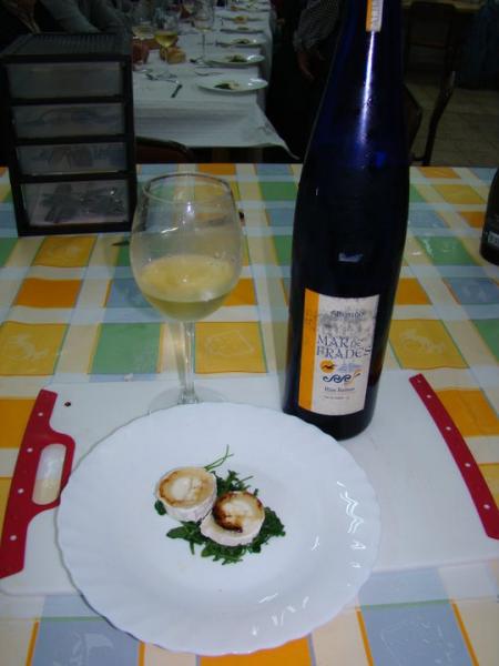 2º plato Rucula salteada con Queso de rulo de Cabra caramelizado:Vino Mar de Frades Magnun 2007 Albariño