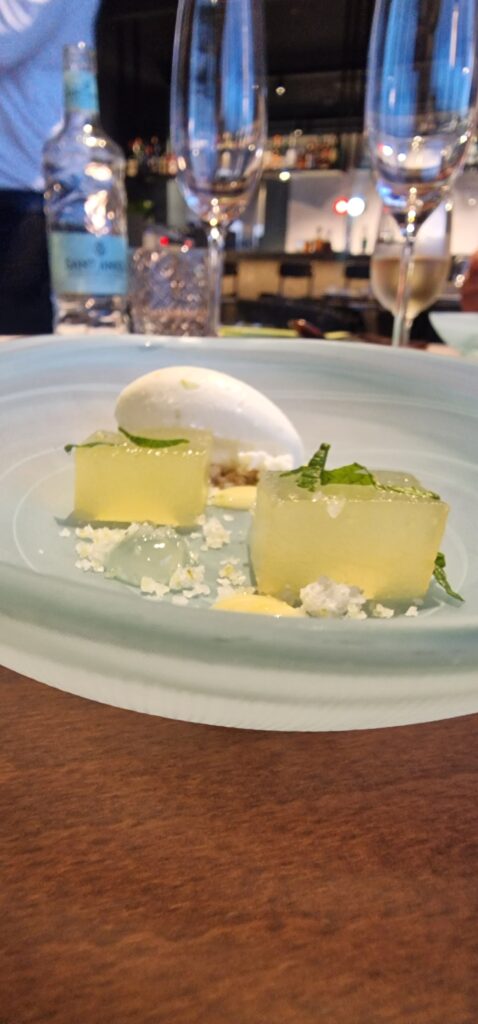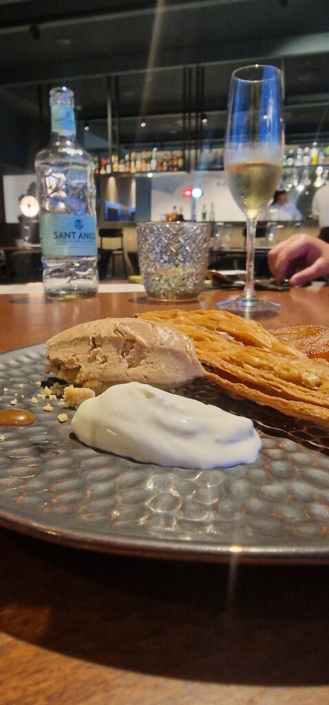 El cierre dulce se articuló en dos fases: primero, un melón-mojito, refrescante, chispeante y herbal, ideal como limpiador de paladar. Para culminar, un tatin de manzana con helado de especias, donde la calidez de la manzana caramelizada y las notas de canela y clavo del helado ofrecieron un broche elegante y reconfortante.