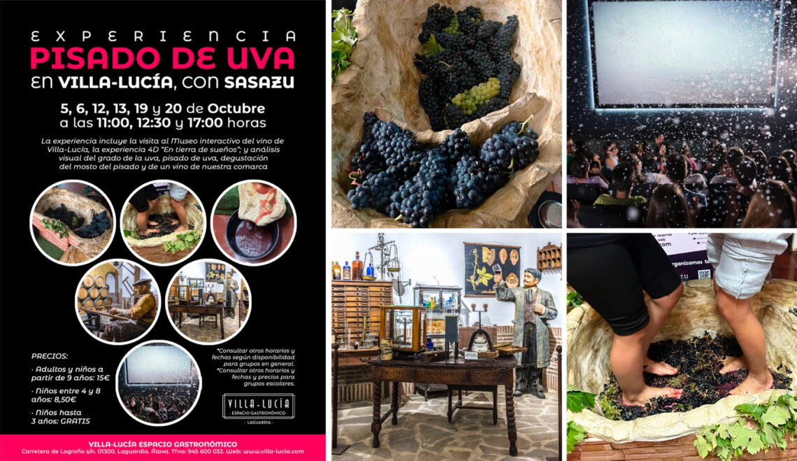 El espacio gastronómico de Laguardia ha organizado, junto con Sasazu, la experiencia del pisado de la uva, que además incluye, la visita al Museo del Vino de Villa-Lucía y la Experiencia 4D “En tierra de sueños”. Un plan perfecto para que las familias, amigos o grupos escolares conozcan el mundo del vino de una forma mucho más inclusiva, amena y sobre todo, sorprendente.