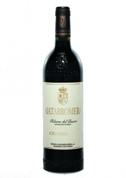 Matarromera Crianza es un vino elaborado 100% con uvas Tempranillo que ha sido envejecido durante 14 meses en barricas de roble americano y francés. Es muy cubierto de capa, de tono cardenal oscuro con abundante ribetes amoratados. Intenso y sutil, elegante y muy complejo, presenta toques especiados de clavo, pimienta negra y regaliz de palo. Plantas aromáticas, jara y tomillo con fondo mineral y de frutas rojas y negras muy maduras como mora, guinda, fresa y cereza. Tonos especiados, entre minerales de tinta china y chocolate. Tiene un tanino muy dulce y pulido, que sostiene una fruta negra nítida, con final largo y muy elegante.