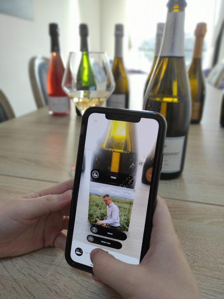 Gracias a la aplicación gratuita Smartbottle, basta con escanear la etiqueta de la botella de champagne para entrar poco a poco en el corazón de la bodega y descubrir al propietario en sus viñedos. Una animación visual en varias