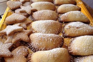 Entre los dulces destacan los crespells, con sus múltiples formas (estrellas, flores, corazones, etc.) y los robiols, hechos con pasta de harina fina doblada con forma semicircular y rellenos de confitura, requesón o cabello de ángel. Además, en el interior de la isla son famosas también las fortmatjades, elaboradas con queso o los rotllos de Alcudia, una especie de roscos adornados con dulces de colores.