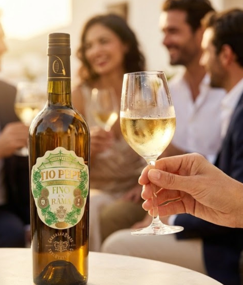 Tío Pepe en Rama presenta un color oro pálido con ligera turbidez, resultado de la presencia de la flor en suspensión. Su nariz es intensa y fragante, con notas salinas y yodadas, recuerdos de tiza y levadura fresca, que se entrelazan con matices de frutos secos, camomila y delicadas notas cítricas. En boca es complejo, fresco, seco, sabroso y salino, con un final largo y persistente que invita a seguir disfrutándolo.En el año en que Jerez celebra su capitalidad gastronómica, Tío Pepe en Rama reafirma su carácter profundamente gastronómico. Su versatilidad lo convierte en el compañero ideal para acompañar desde aperitivos hasta propuestas culinarias más elaboradas, elevando cada experiencia en la mesa.